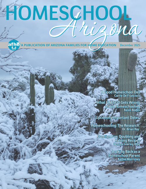 Homeschool Arizona is a full-color, high quality magazine published by AFHE with the purpose of encouraging, equipping, informing, and inspiring homeschooling families across Arizona. A print edition is mailed out to member families statewide and is made available online in digital format soon after the print edition is mailed out.